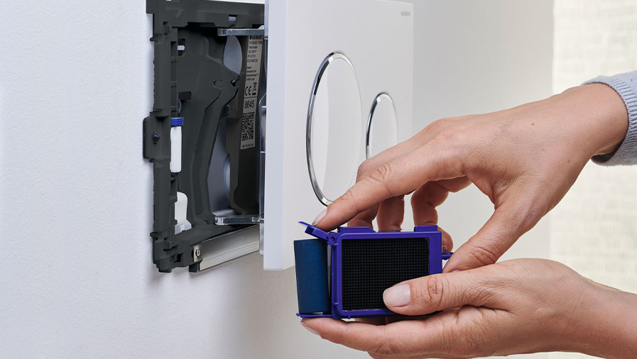 De manuele Geberit DuoFresh module combineert geurzuivering met gebruiksgemak. Door middel van een externe knop activeer je het geurzuiveringssysteem, dat nare geuren direct bij de bron verwijdert via een koolstoffilter. Deze module werkt ook met DuoFresh sticks voor fris spoelwater. De bediening en instellingen, zoals ventilatorsnelheid, zijn eenvoudig aan te passen via de Geberit Home App. Voor installatie is een stroompunt nodig.