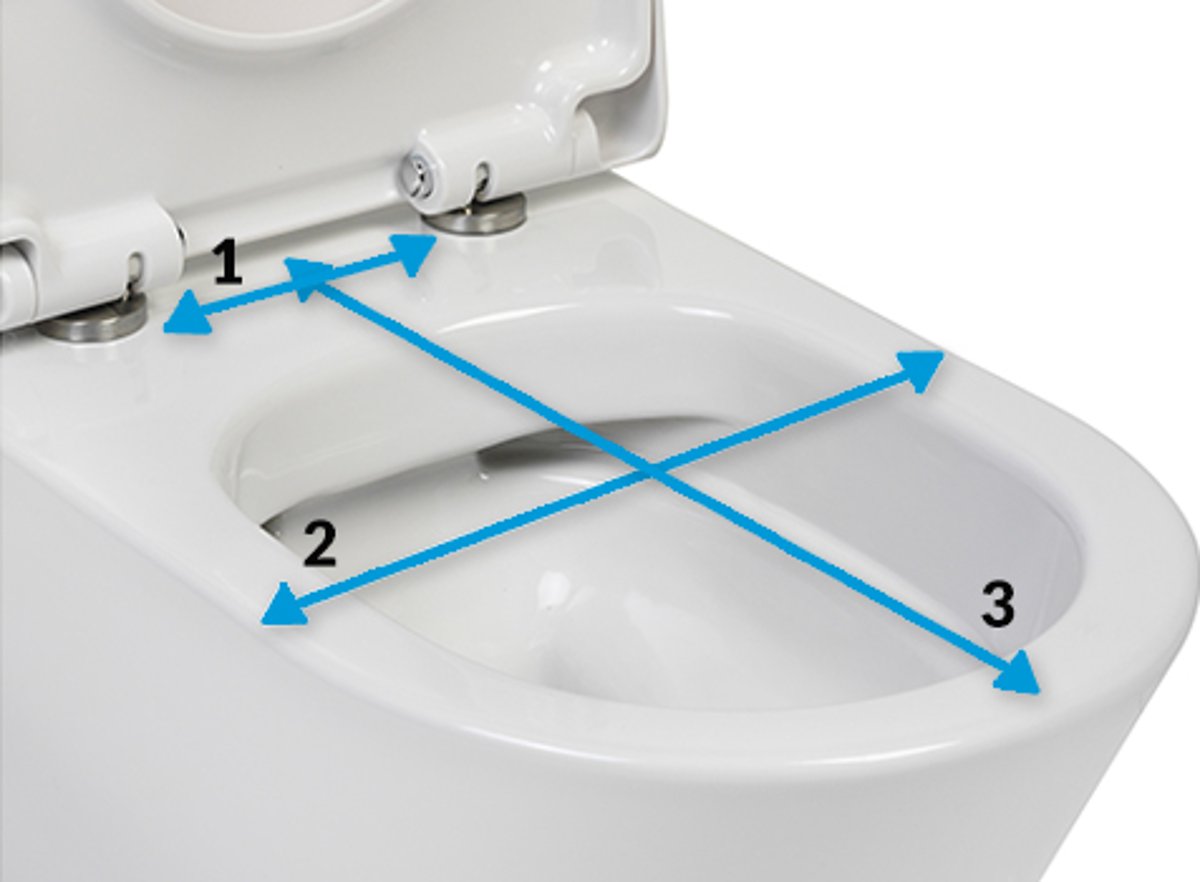 - Hartafstand: de afstand tussen de bevestigingspunten van de toiletbril