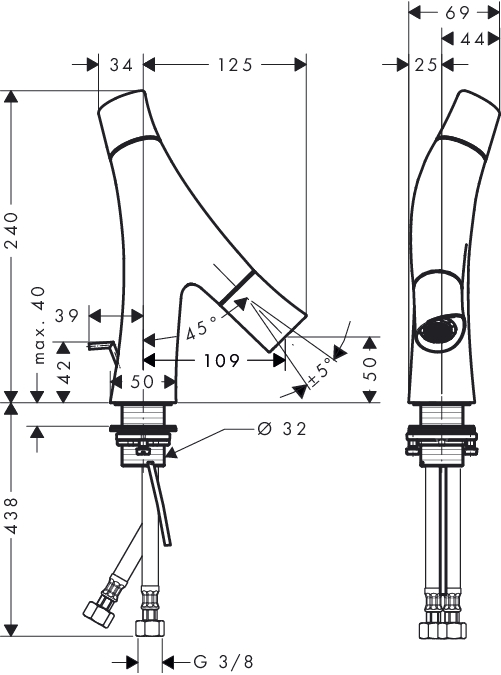 Axor Starck Organic 2-greeps wastafelkraan 24 cm met waste w+k Chroom