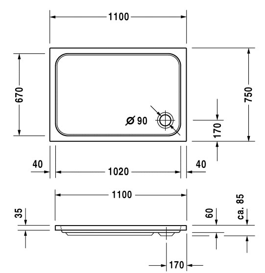 Duravit D-Code Douchebak rechthoek 110x75cm wit