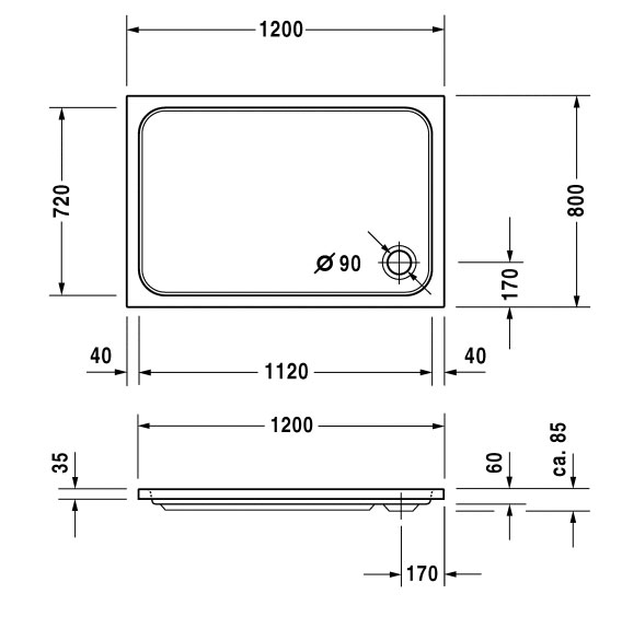 Duravit D-Code Douchebak rechthoek 120x80cm wit