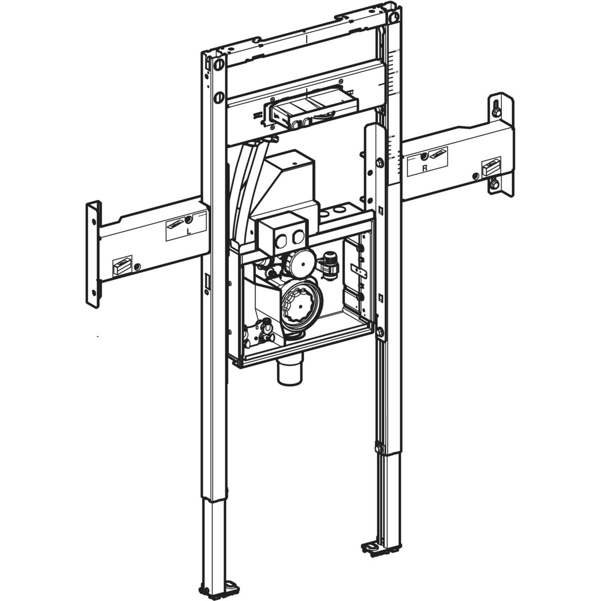 Geberit Duofix element (2025) voor ONE wastafel en ONE wandkraan, deelhoog, met inbouwdraaisifon B120cm