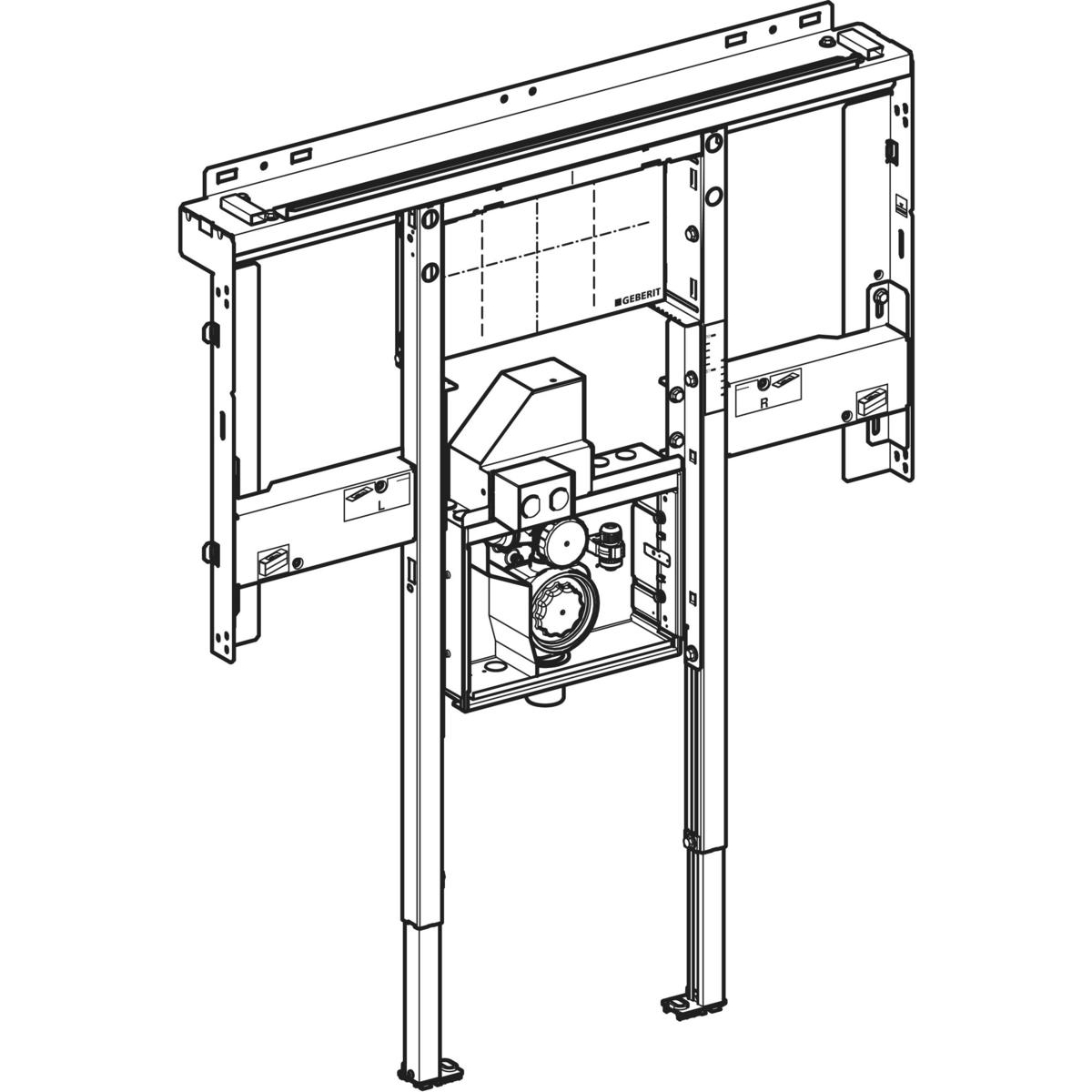 Geberit Duofix element (2025) voor ONE wastafel en wandkraan, ruimtehoog, met inbouwdraaisifon B120cm