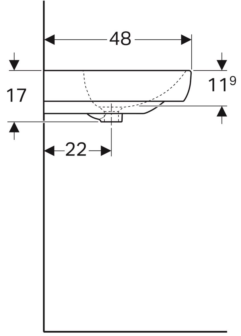 - Deze enkele wastafel kan vrijhangend aan de muur worden bevestigd