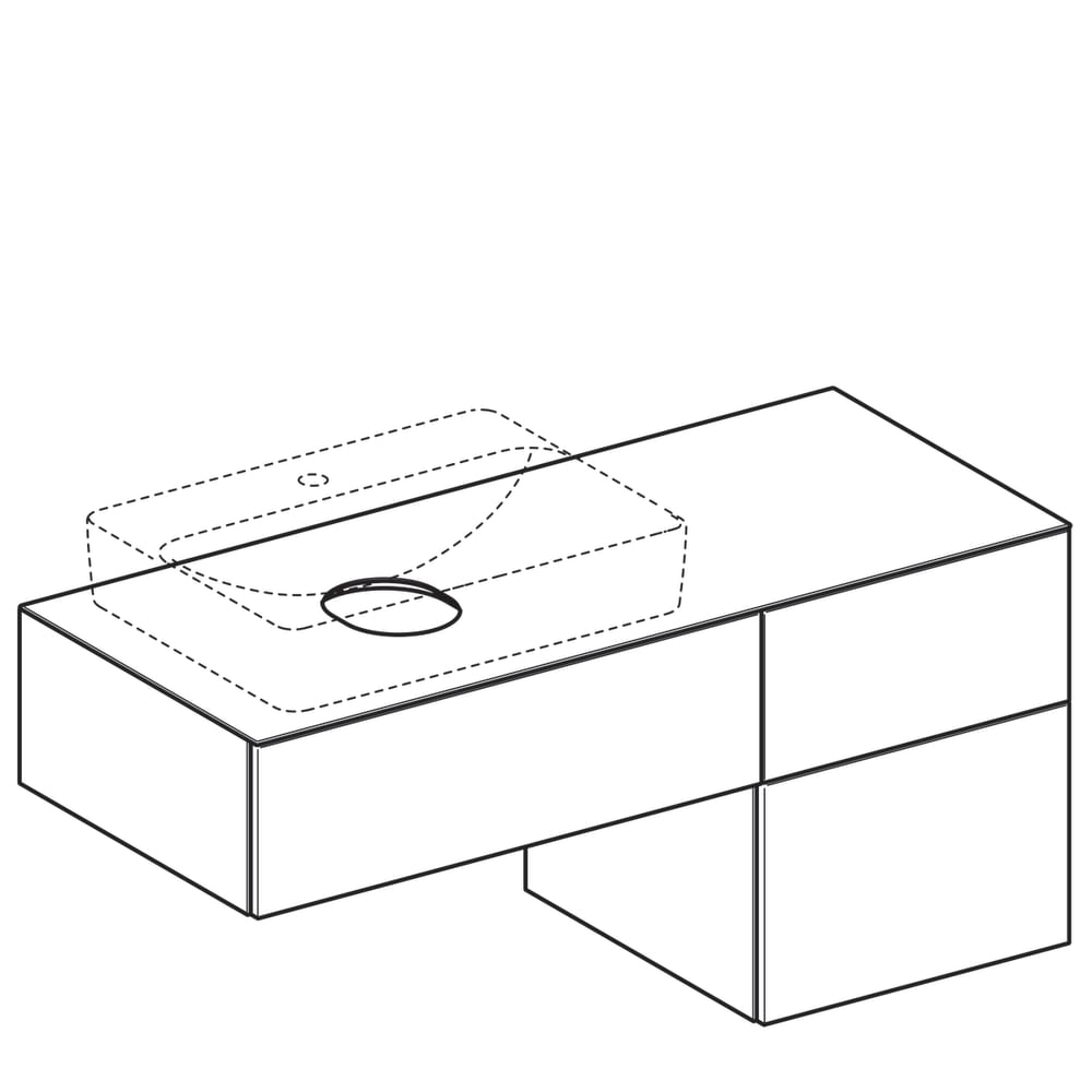 De 3 lades van de wastafelonderkast bieden extra opbergruimte. Dit is een ideale optie voor gezinnen met kinderen of als je veel spullen op te bergen hebt. Let op: de bovenste lade is voorzien van 1 sifonuitsparing.