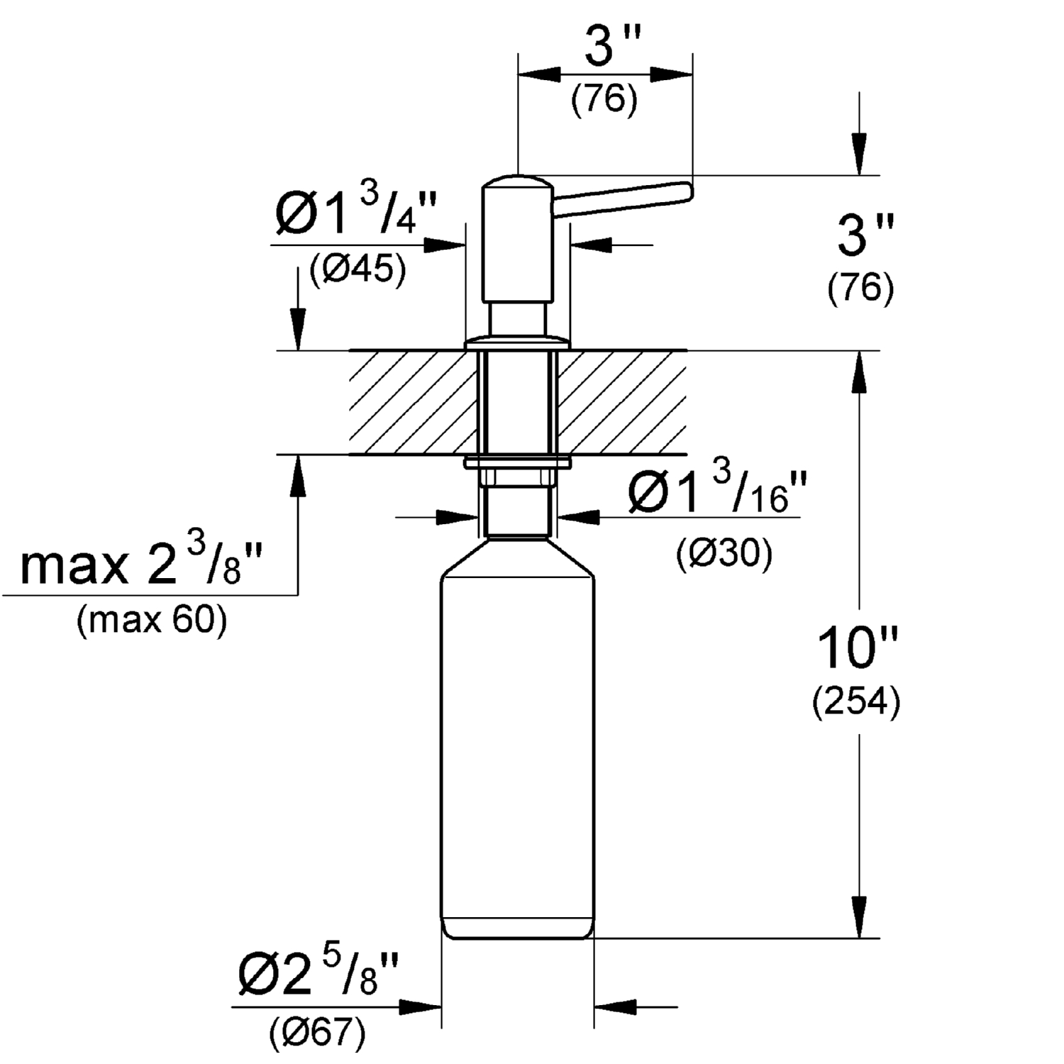 - De inbouw zeepdispenser heeft een inhoud van 0,40 liter