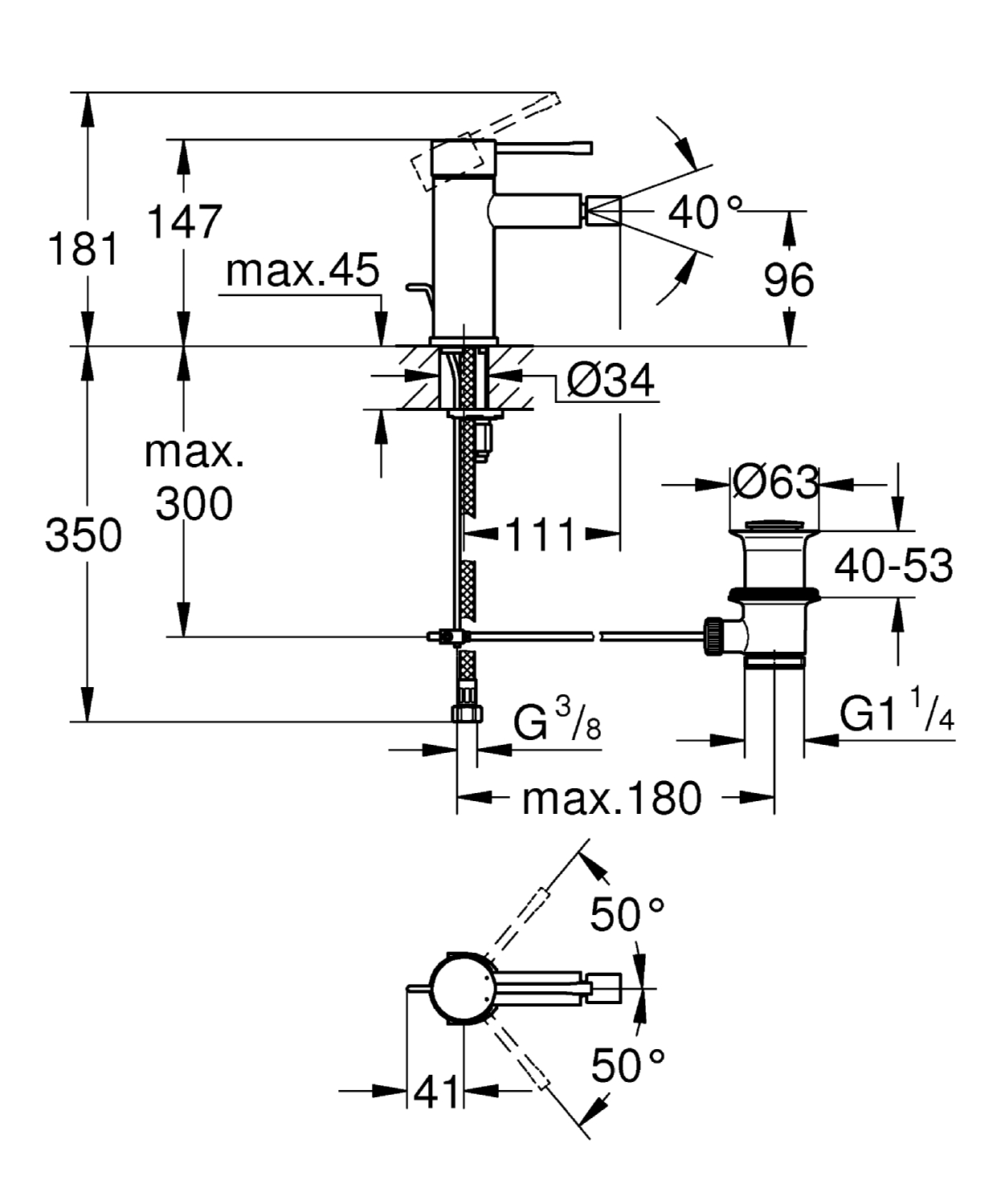 Grohe Essence New S-size bidetkraan met waste Chroom