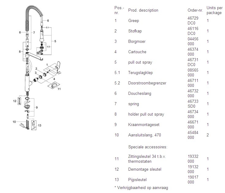 Grohe keukenkraan K7 (hoog) is het mogelijk de greep 45gr of 90gr naar voren als neutrale stand te monteren, daar ik niet voldoende ruimte heb om de greep naar achteren te kunnen bewegen.