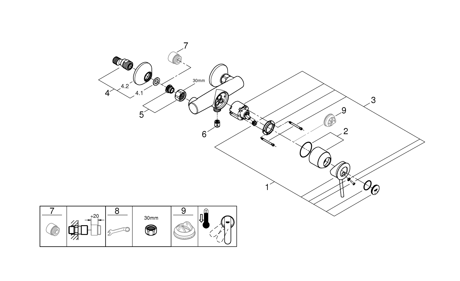 Deze douchekraan is onderdeel van de QuickFix serie van Grohe. QuickFix staat voor 100% gemak: deze douchekraan wordt geleverd met duidelijke montagehandleidingen en zelfs handige installatietools. Bespaar geld en monteer de kraan zelf!