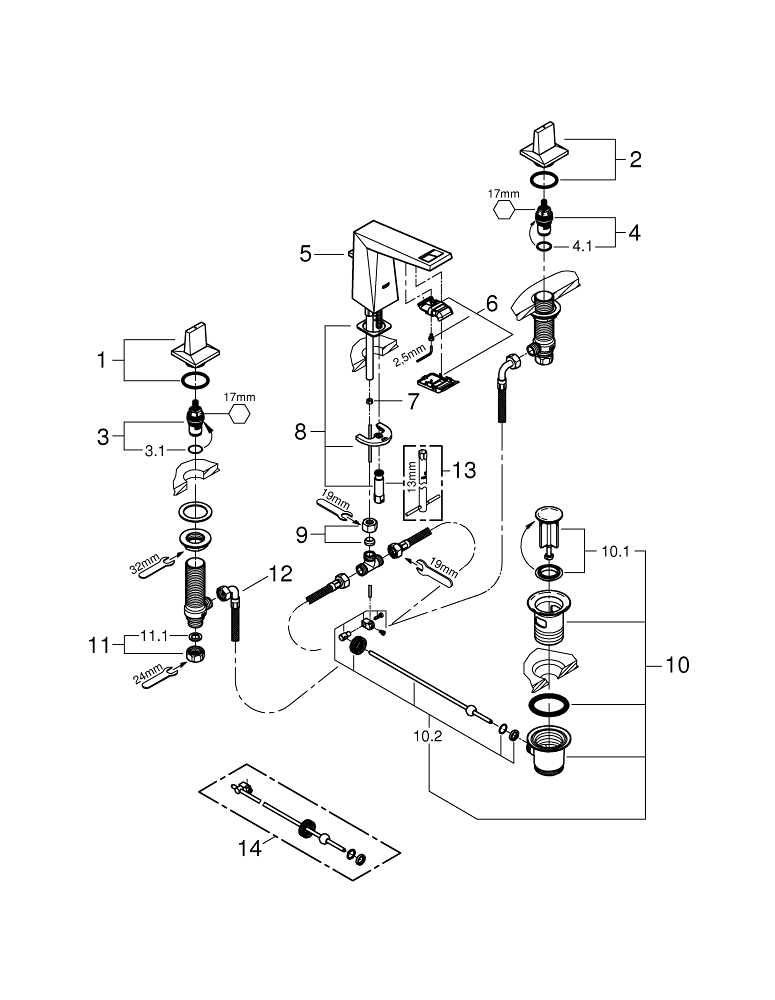 Grohe Spa Allure Brilliant Wastafelmengkraan 3-gats Chroom
