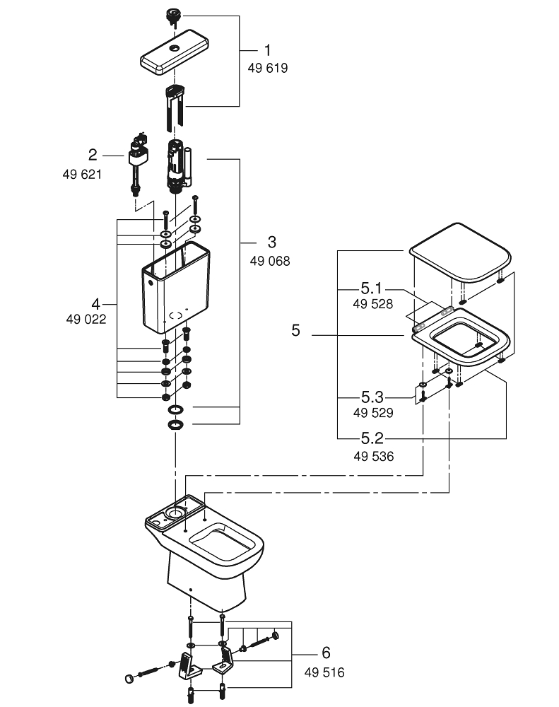 Grohe Start toilet en reservoir met inlaat onderzijde en quickrelease toiletbril wit