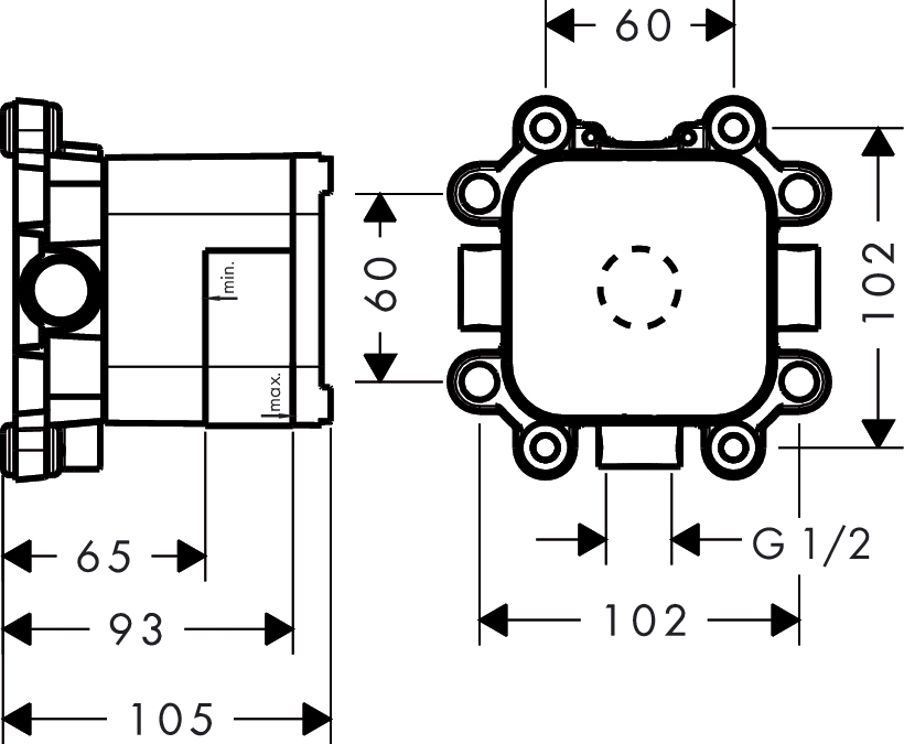 • het inbouwdeel is benodigd in geval van onvoldoende kwaliteit en stabiliteit van de wand