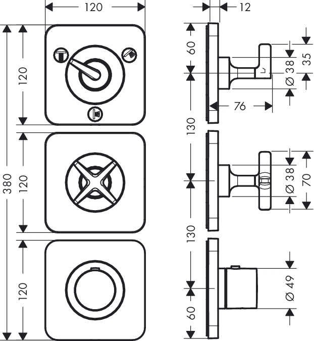 • combinatie van Highflow thermostaat met stopkraan en omstelkraan voor 3 functies