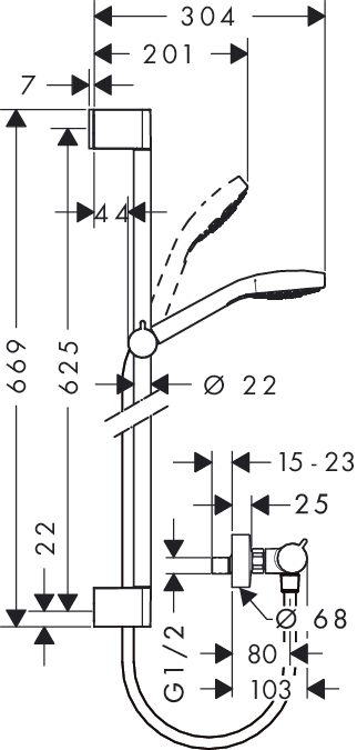 Hansgrohe Crometta badset EcoSmart met handdouche met 2 stralen wit/chroom