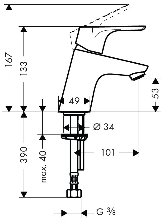 - Hoogte fonteinkraan: 133 mm