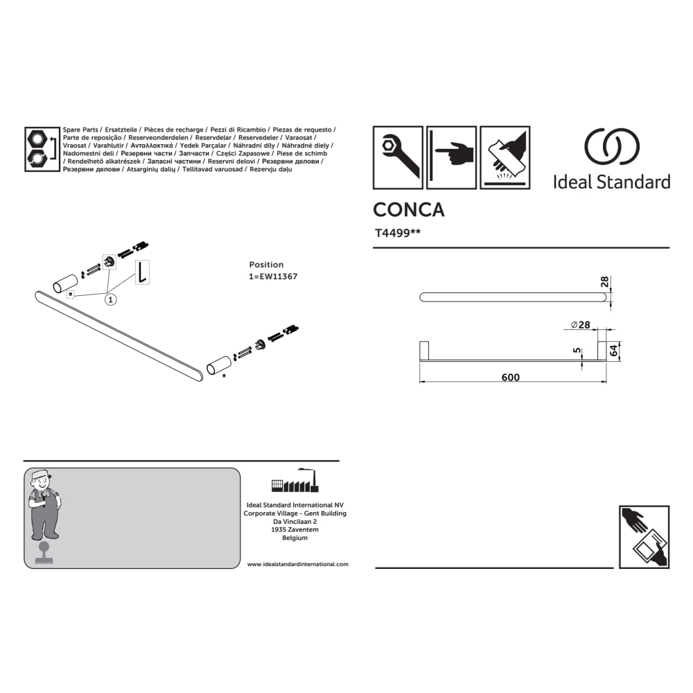 Ideal Standard Conca Handdoekhouder 60x6,4x2,8 cm Silver Storm