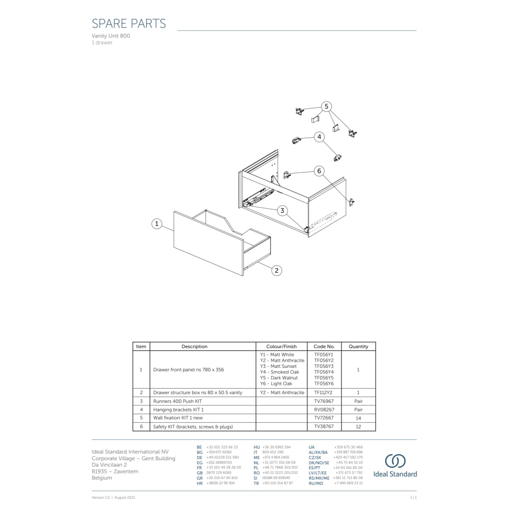 Ideal Standard Conca Wastafelonderkast 1 lade 80x50,5x37 cm Dark Walnut