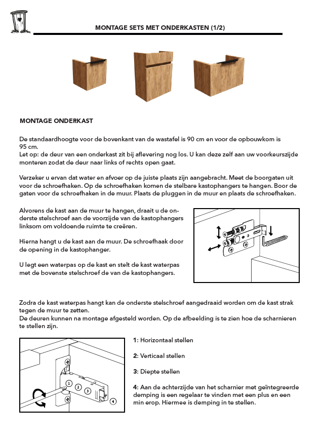 - De deur van de fonteinonderkast kan naar links of naar rechts open