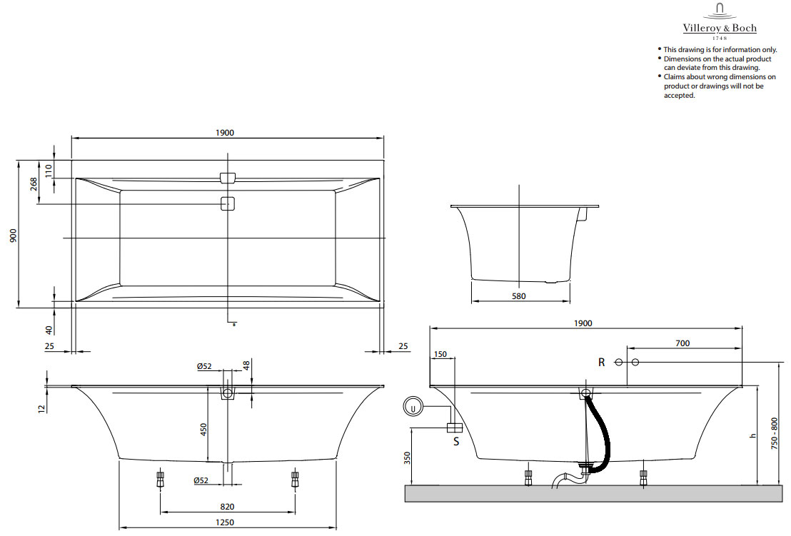 Het bad wordt compleet geleverd met een bijpassende afvoercombinatie en badpoten. Hierdoor kun je direct aan de slag met het plaatsen.
